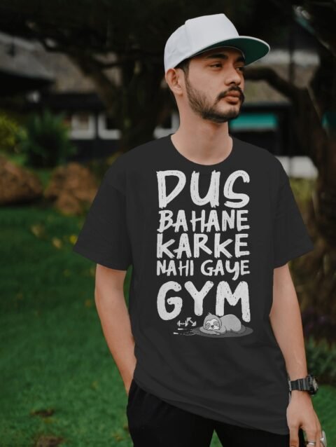 Men’s Printed Oversized Round Neck Half Sleeve T-Shirt | Casual Graphic T-shirt | Dus Bahane Karke Nai gaye Gym