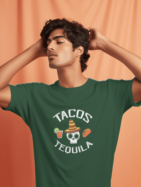 Men’s Printed Round Neck Half Sleeve T-Shirt | Casual Graphic T-shirt | Tacos Tequila