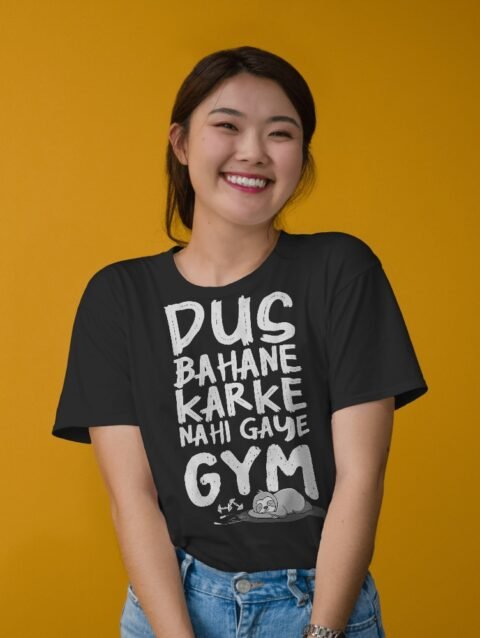 Women’s Printed Oversized Round Neck Half Sleeve T-Shirt | Casual Graphic T-shirt | Dus Bahane Karke Nai gaye Gym