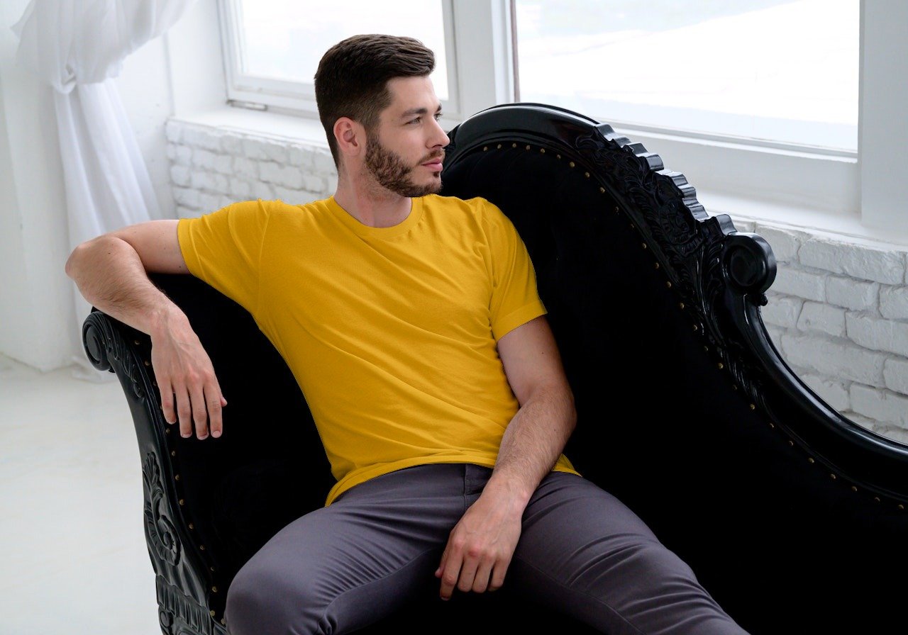 Men’s Solid Round Neck Half Sleeve T-Shirt | Golden Yellow
